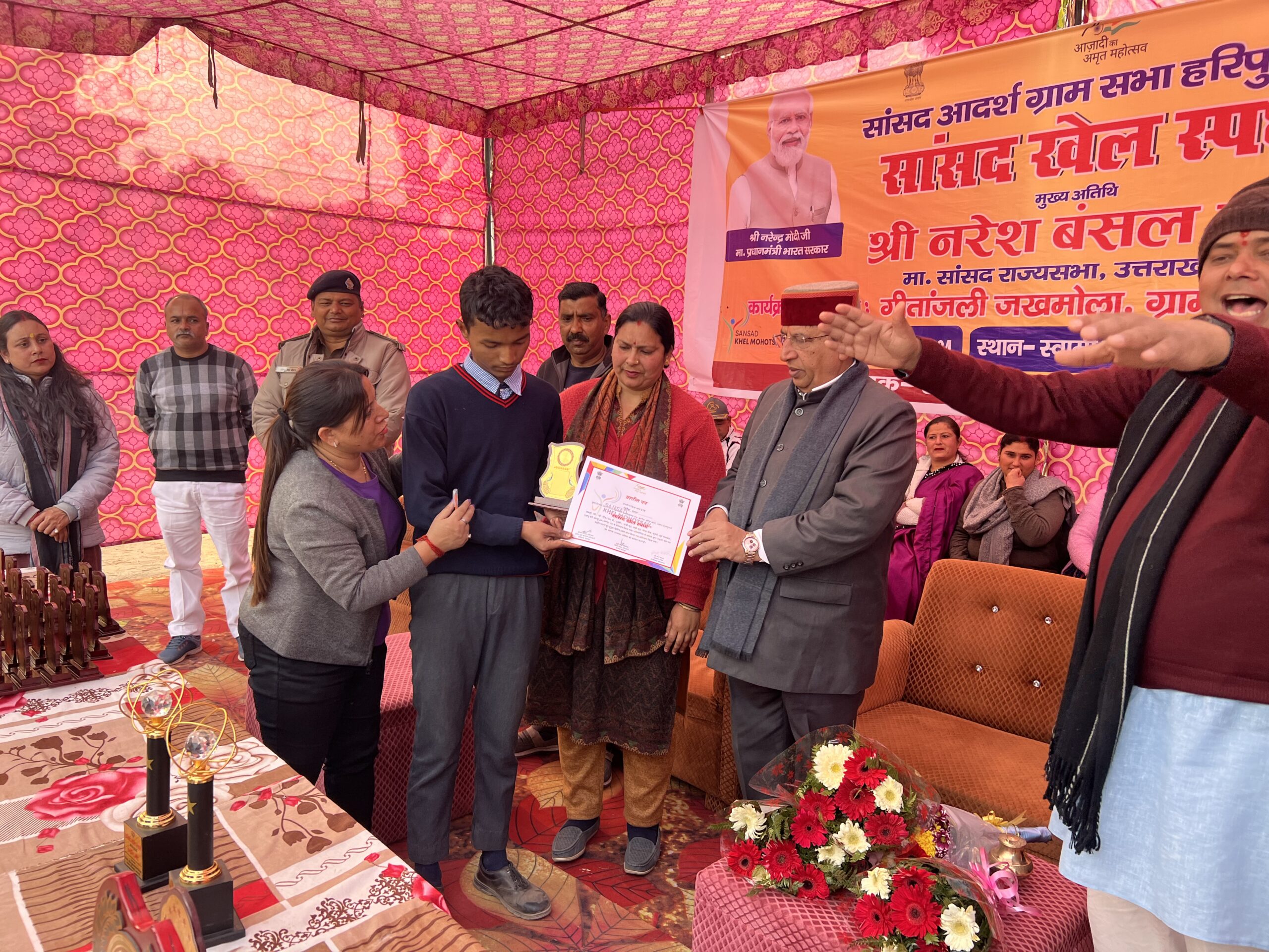 Geetanjali Jakhmola is the elected Gram Pradhan of Haripur Kalan, known for her transparent leadership, action-oriented governance, and deep connection with the people.